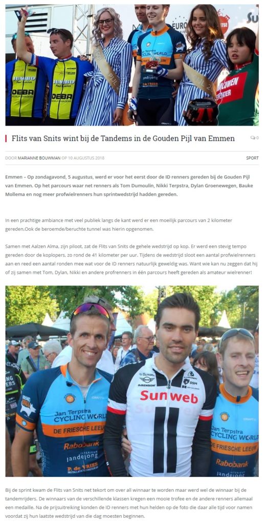 Groot Sneek – Flits van Snits wint bij de Tandems in de Gouden Pijl van Emmen